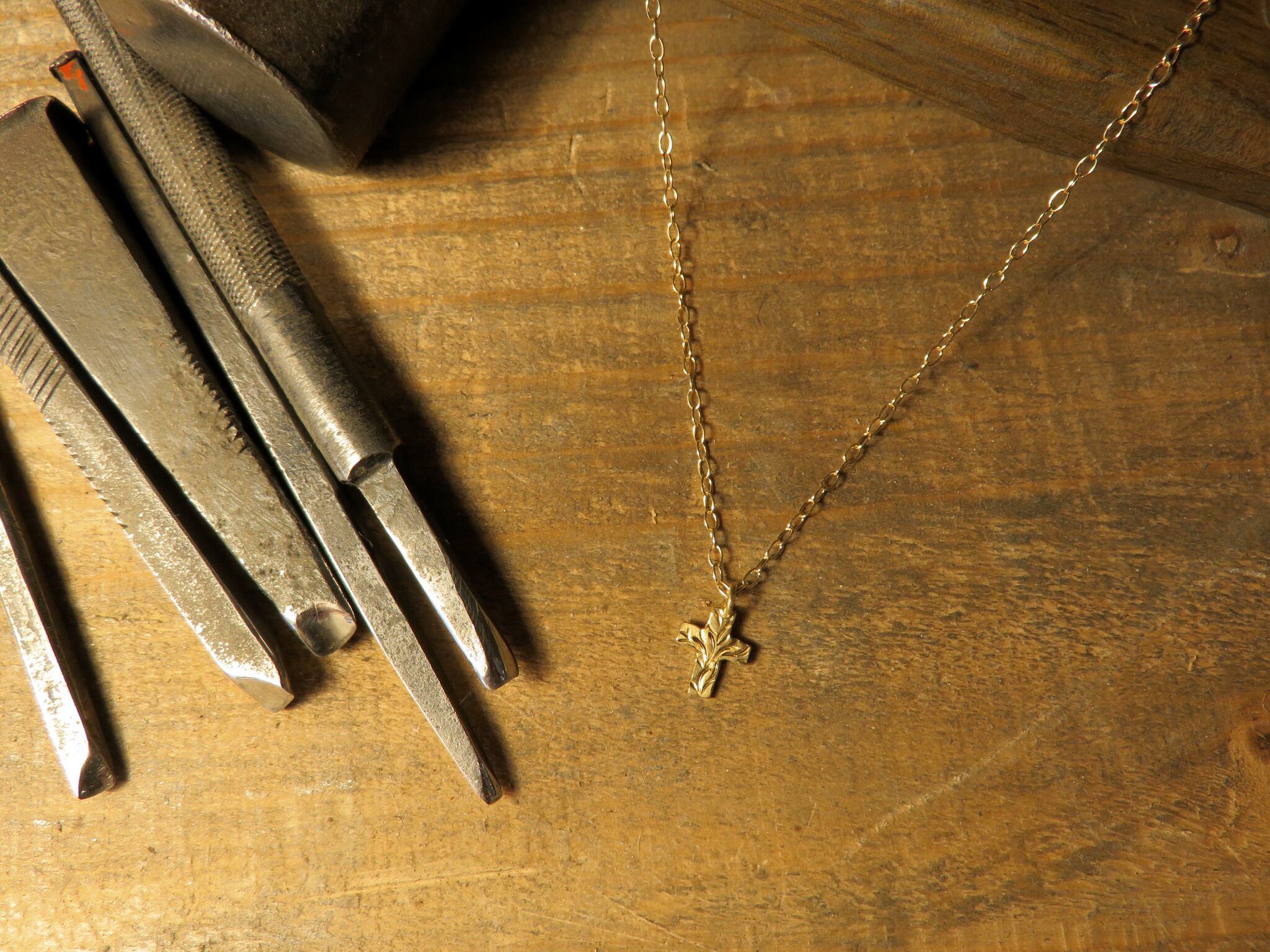 K18金ゴールドネックレス/クロス forメンズ Gold Necklace