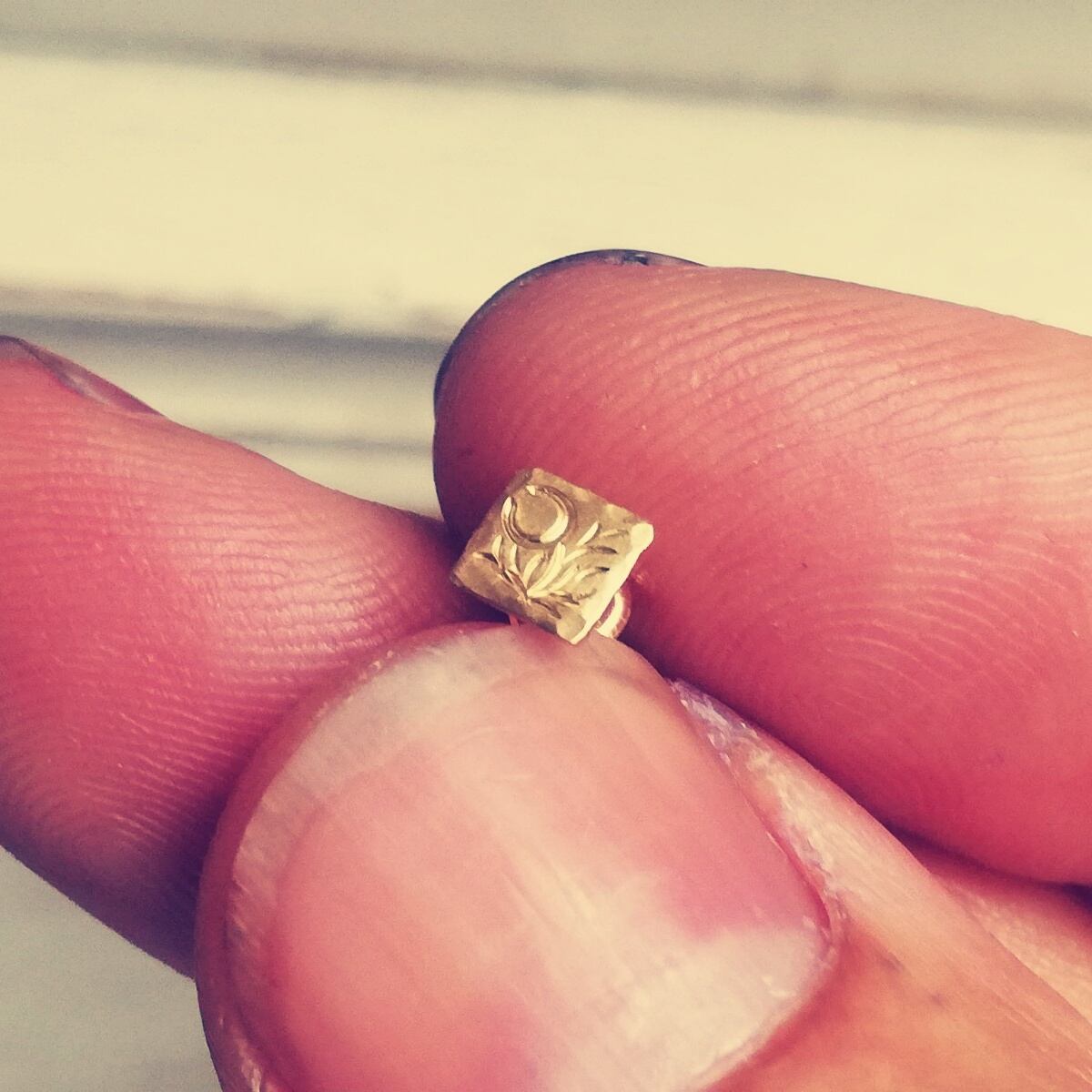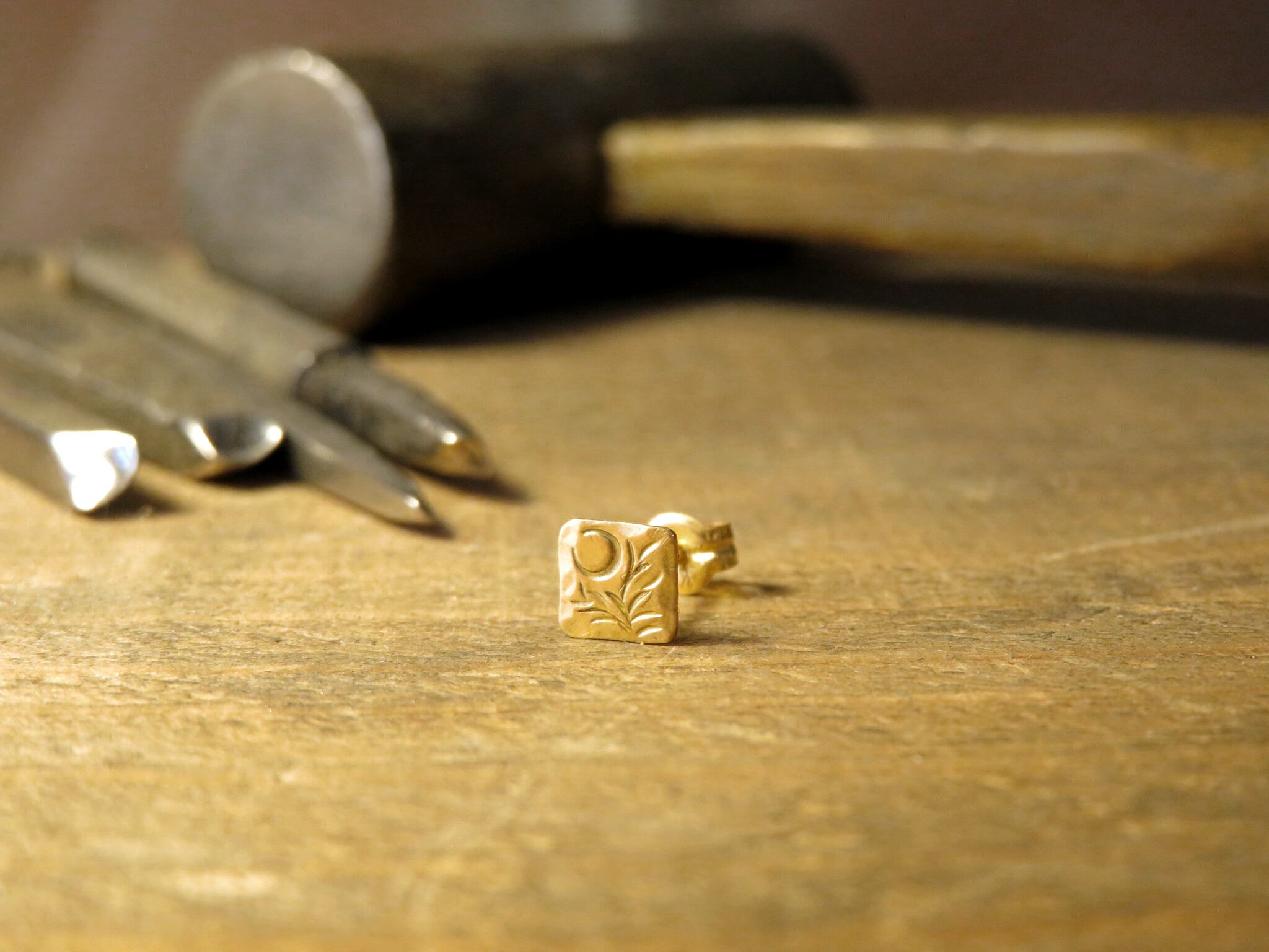 K18金ゴールド叩きスタッドピアス/スクエア Gold Earring ペアアクセサリーにも