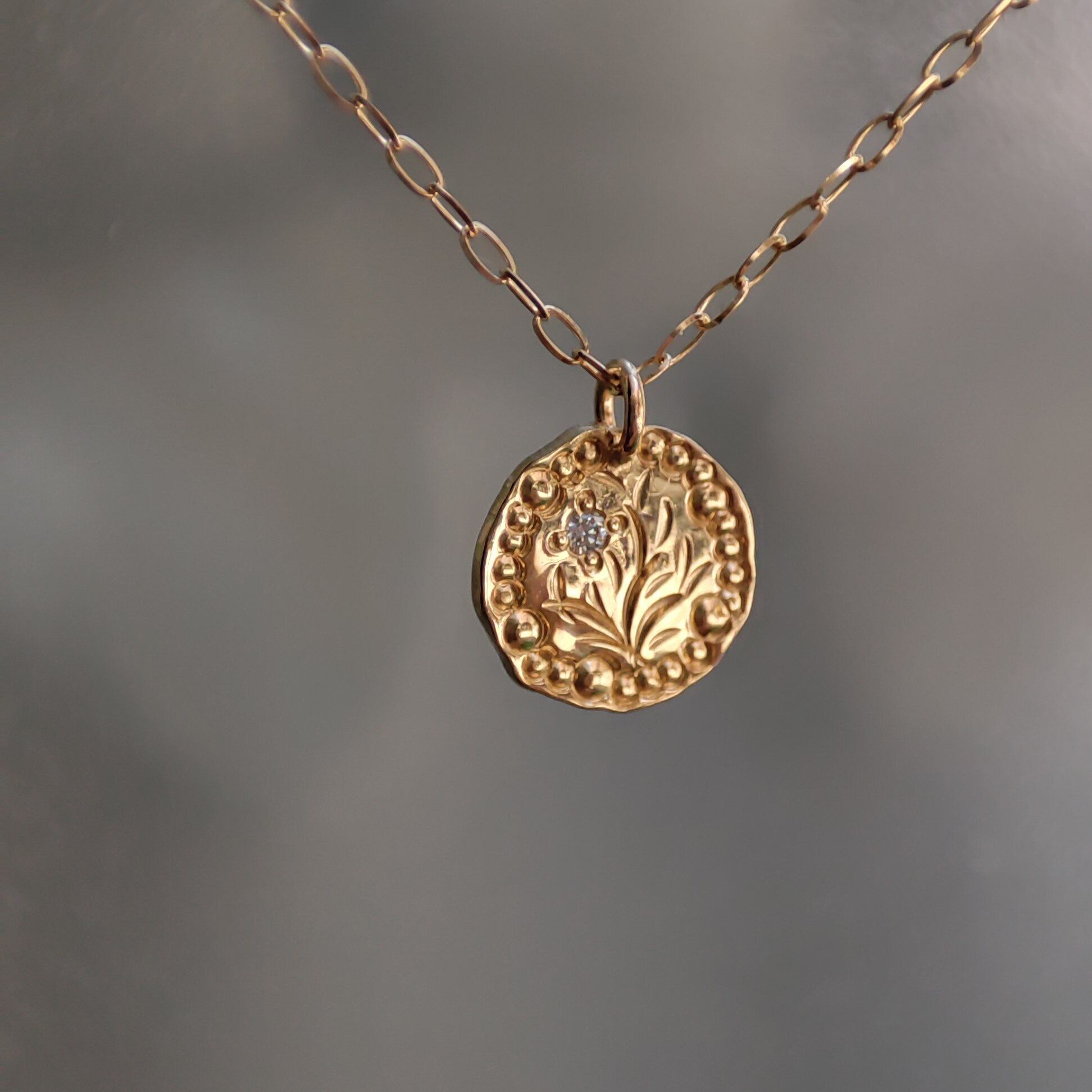 K18金ゴールドネックレス/グレイン with ダイヤ forレディース Gold Necklace ペアアクセサリーにも
