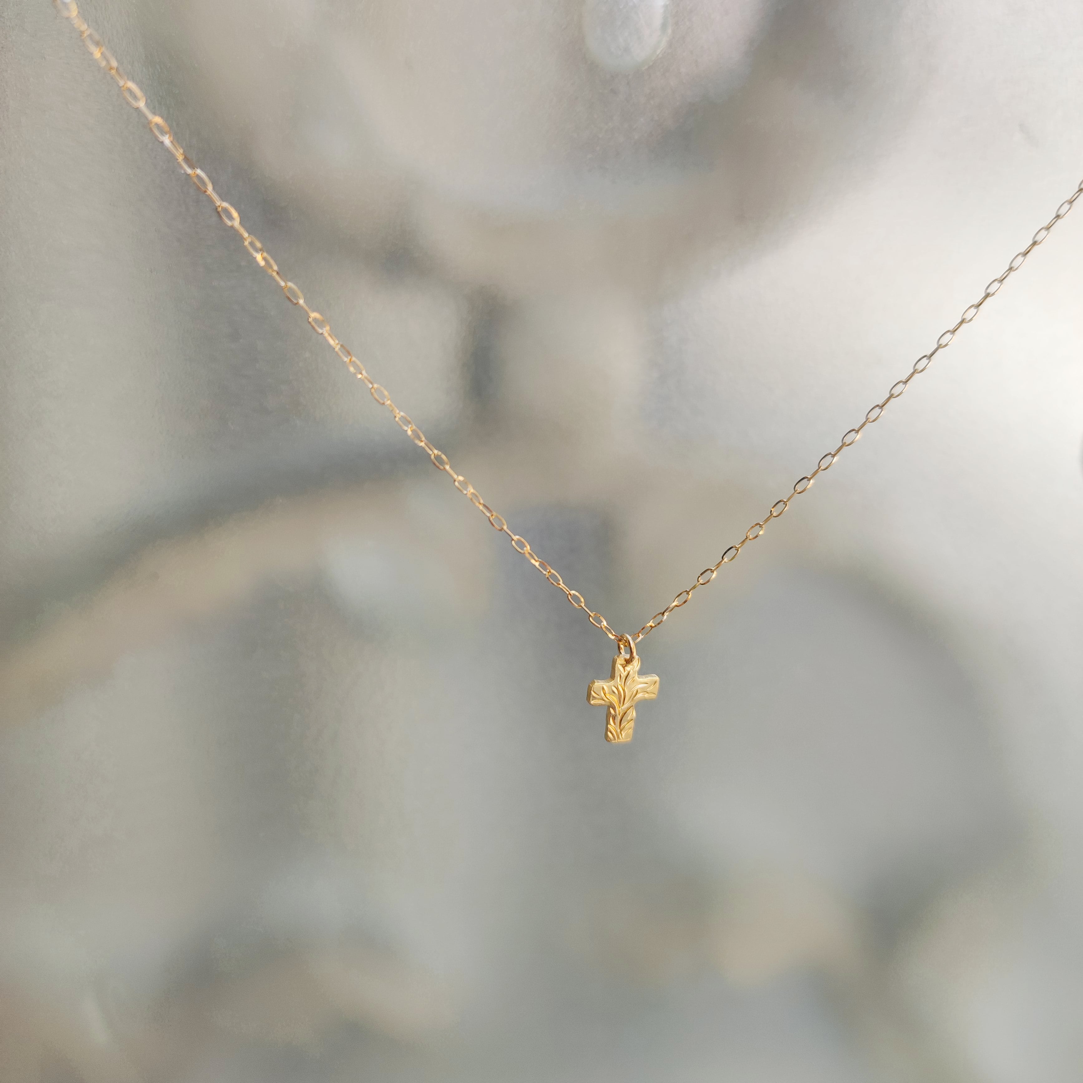 K18金ゴールドネックレス/クロス for レディース Gold Necklace ペアアクセサリーにも