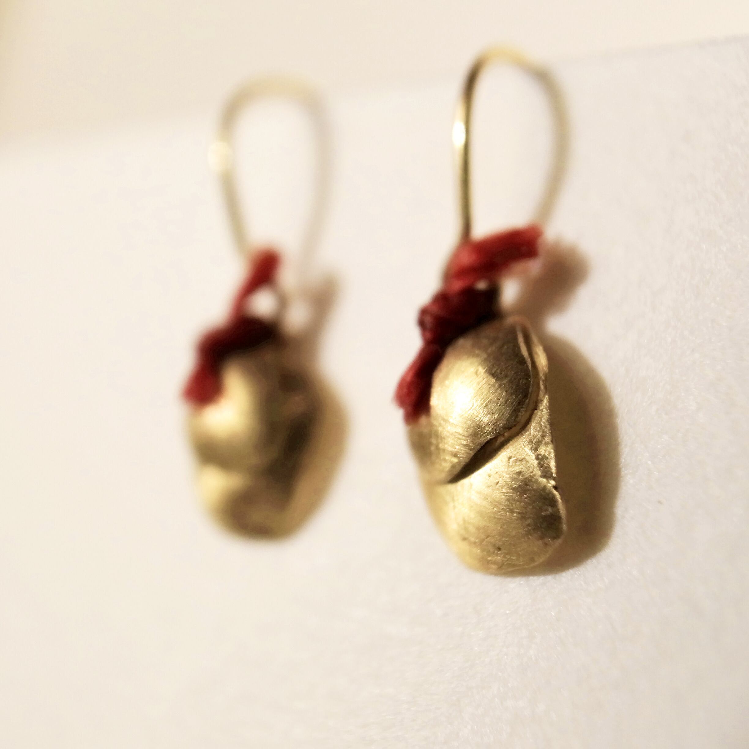 地金を鎚で叩いて薄く延ばして造形されたピアストップ。