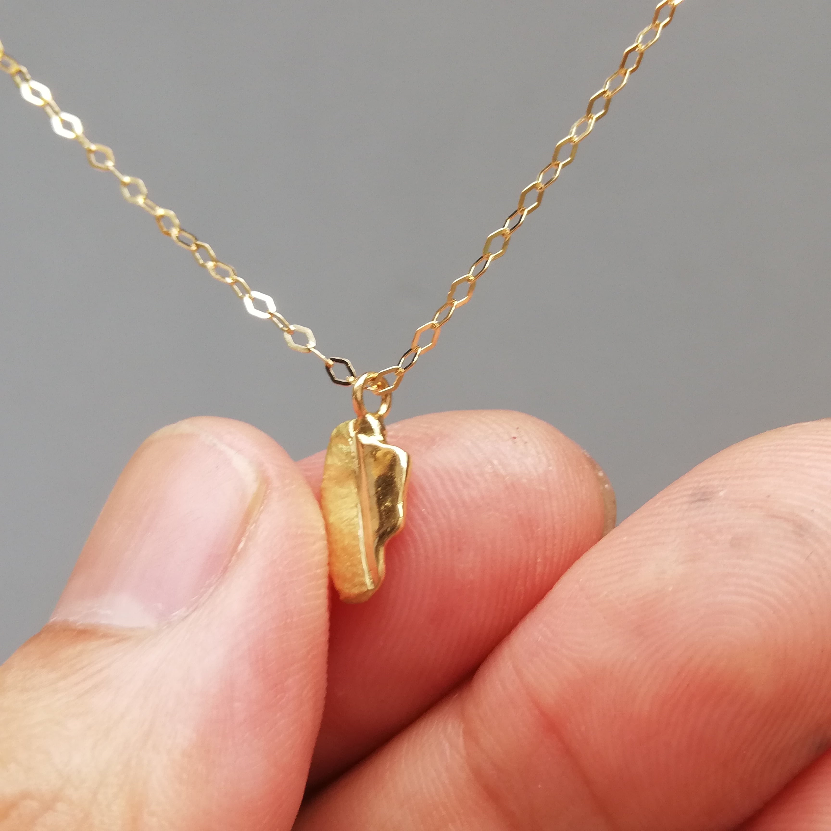 溶けていく金と作家のコラボレーションが生み出す 一瞬の造形をペンダントにしました。