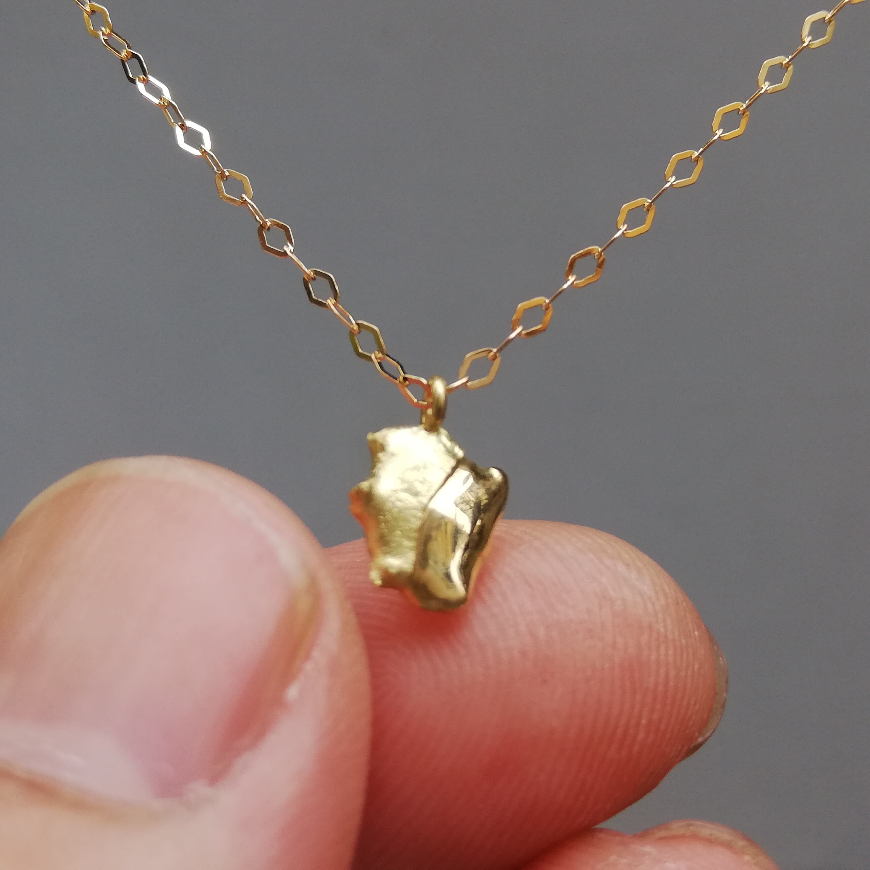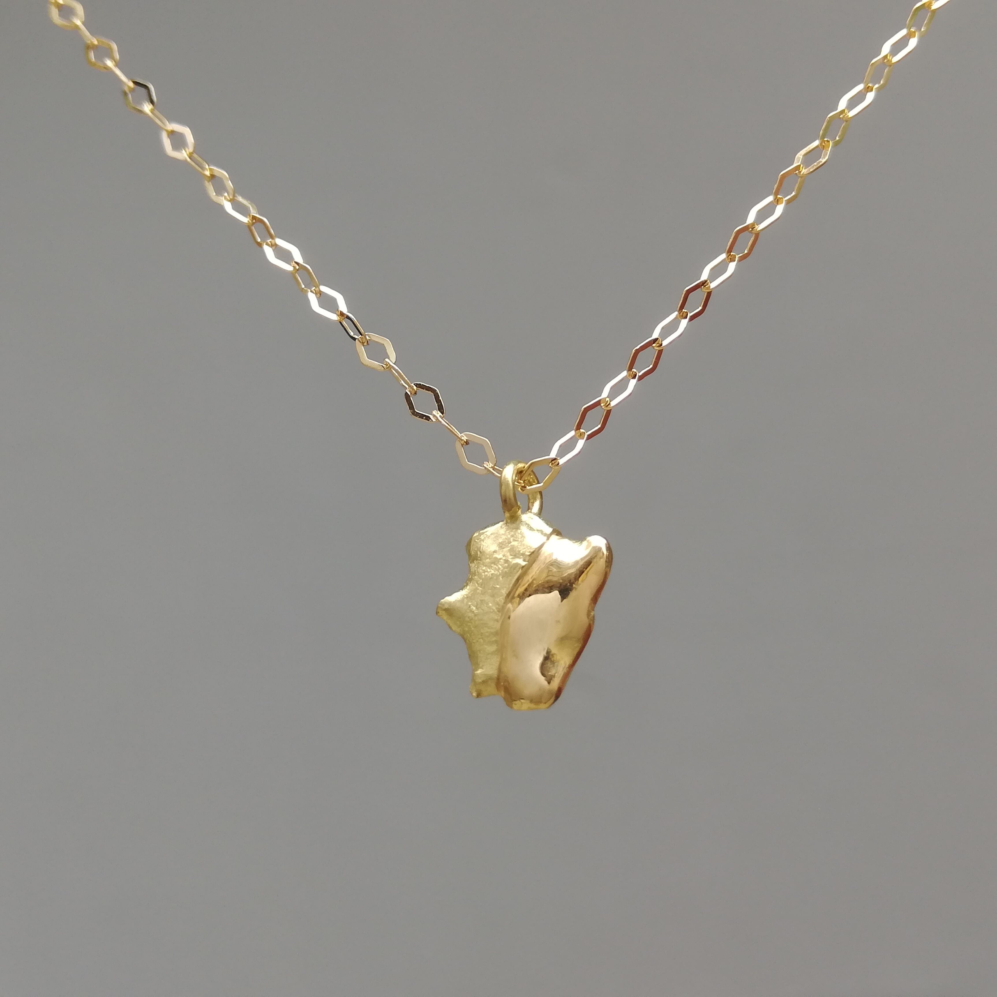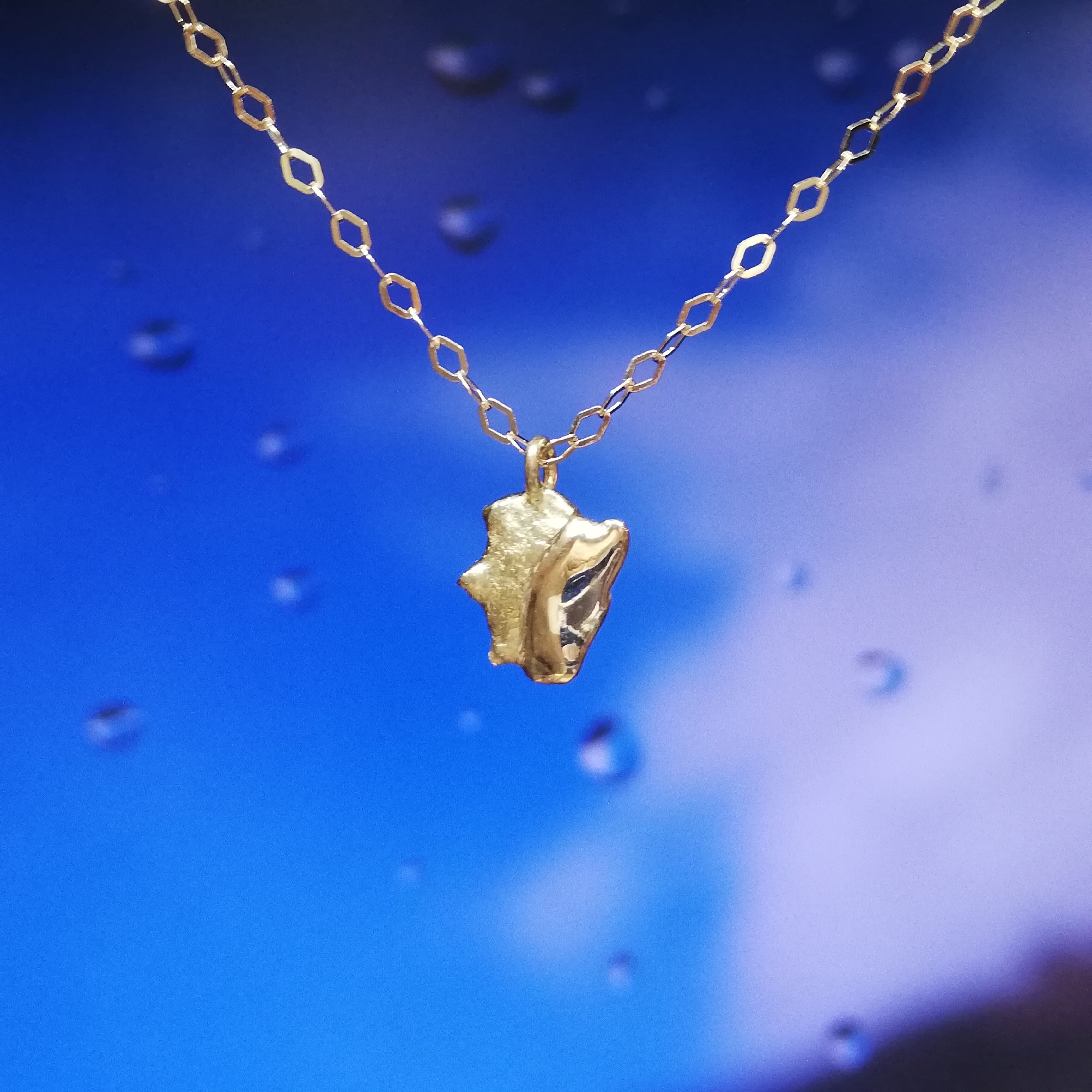 溶けていく金と作家のコラボレーションが生み出す 一瞬の造形をペンダントにしました。