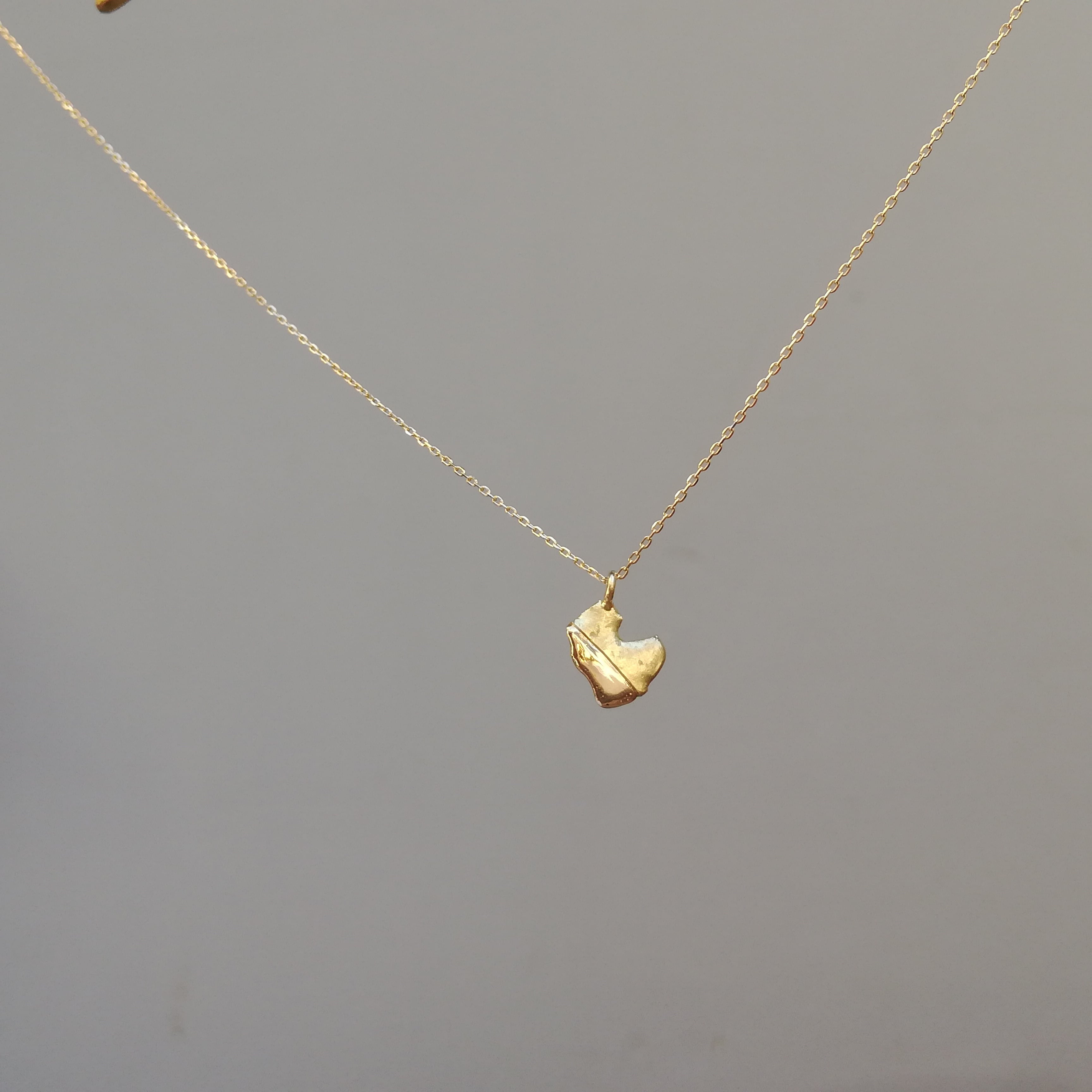 溶けていく金と作家のコラボレーションが生み出す 一瞬の造形をペンダントにしました。