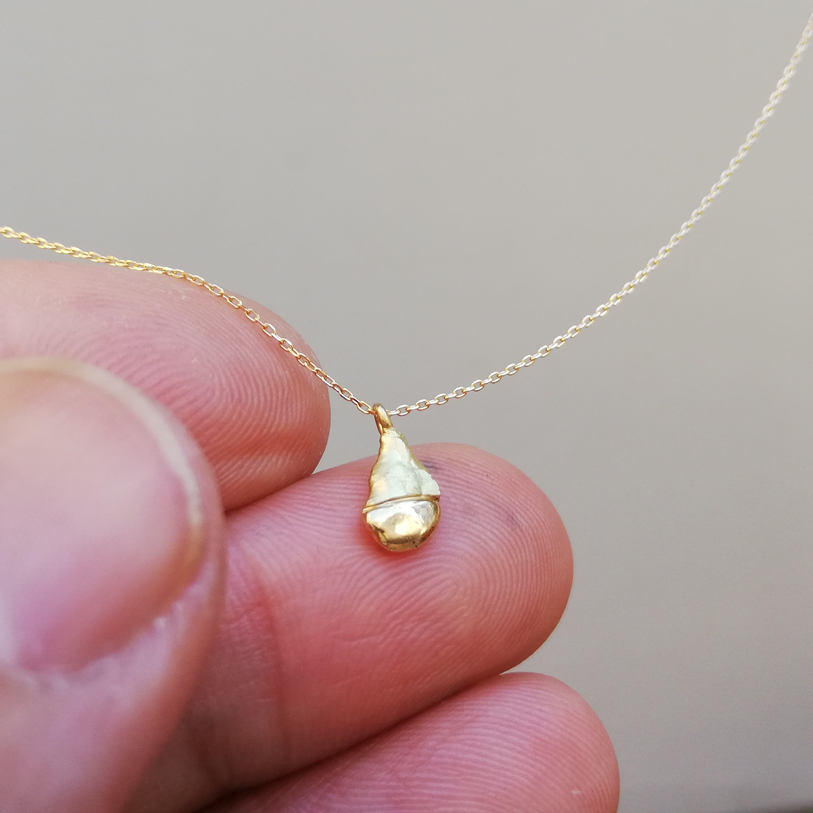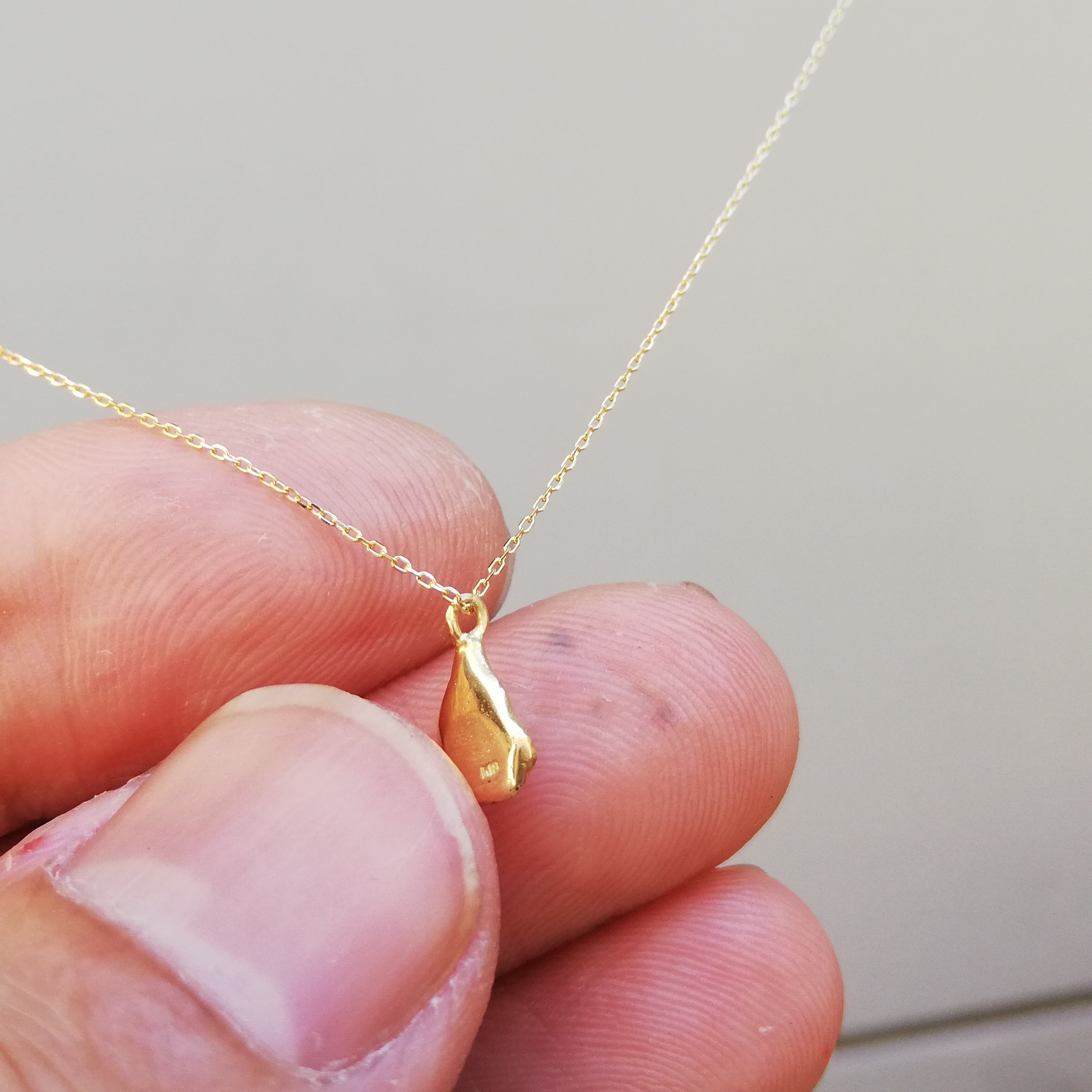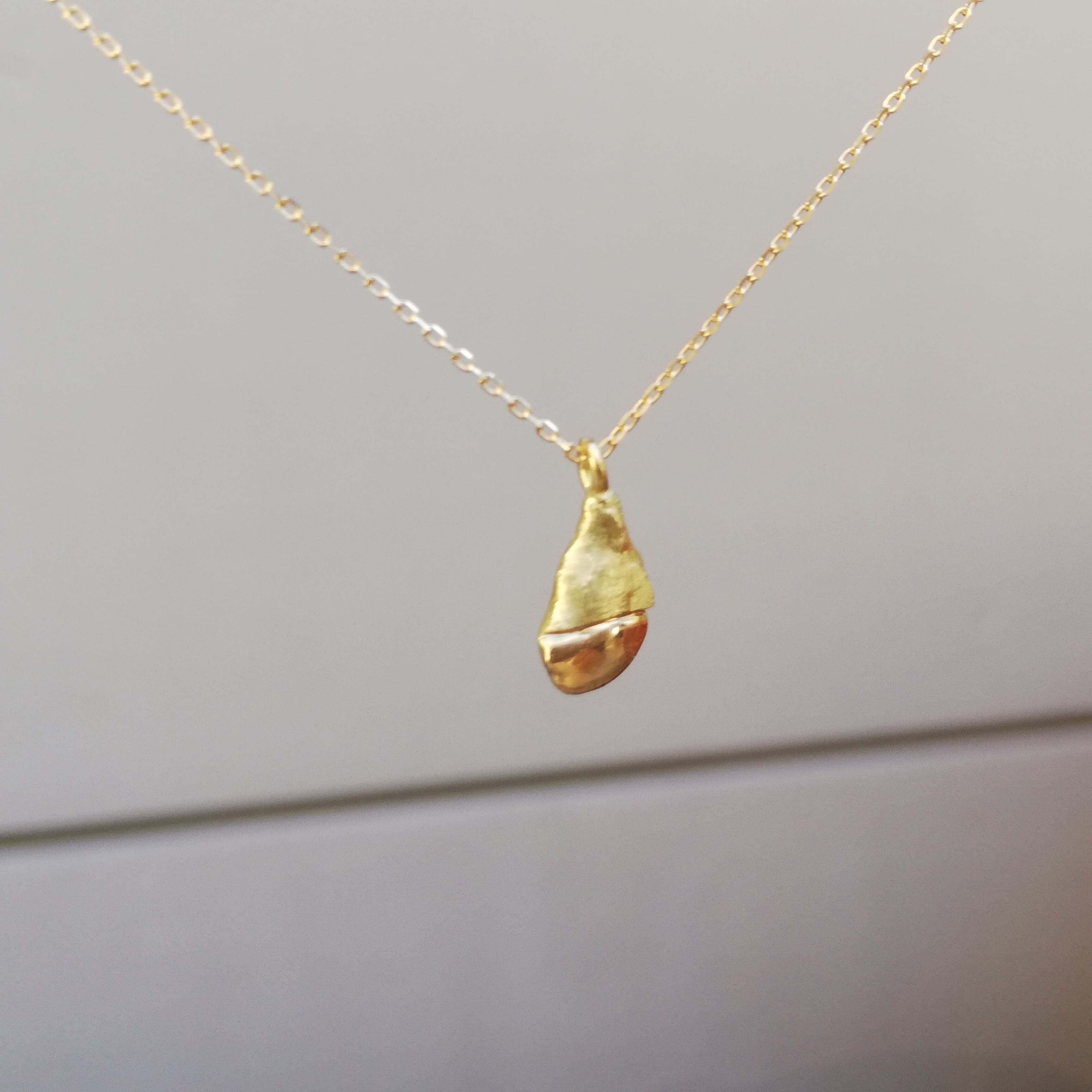 溶けていく金と作家のコラボレーションが生み出す 一瞬の造形をペンダントにしました。