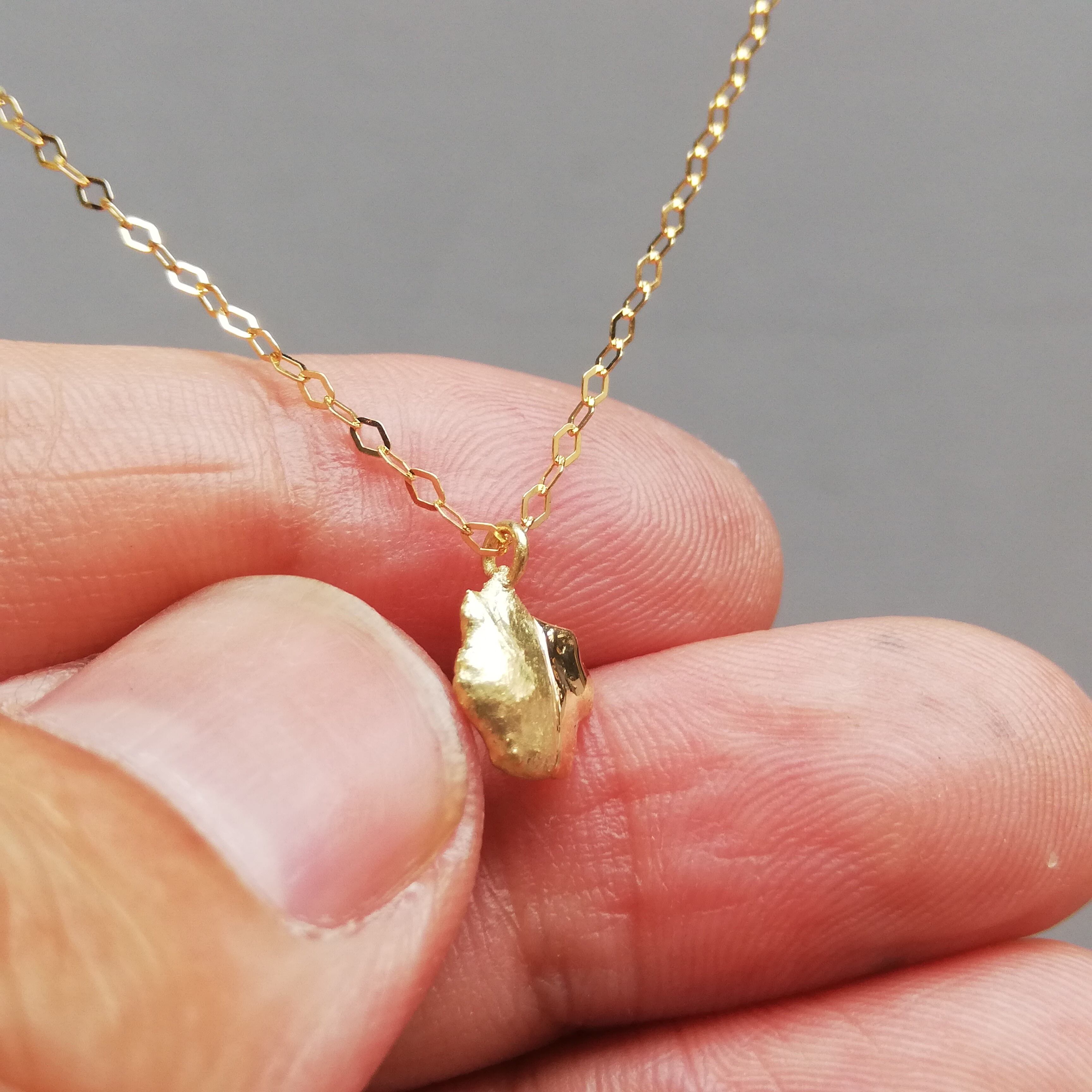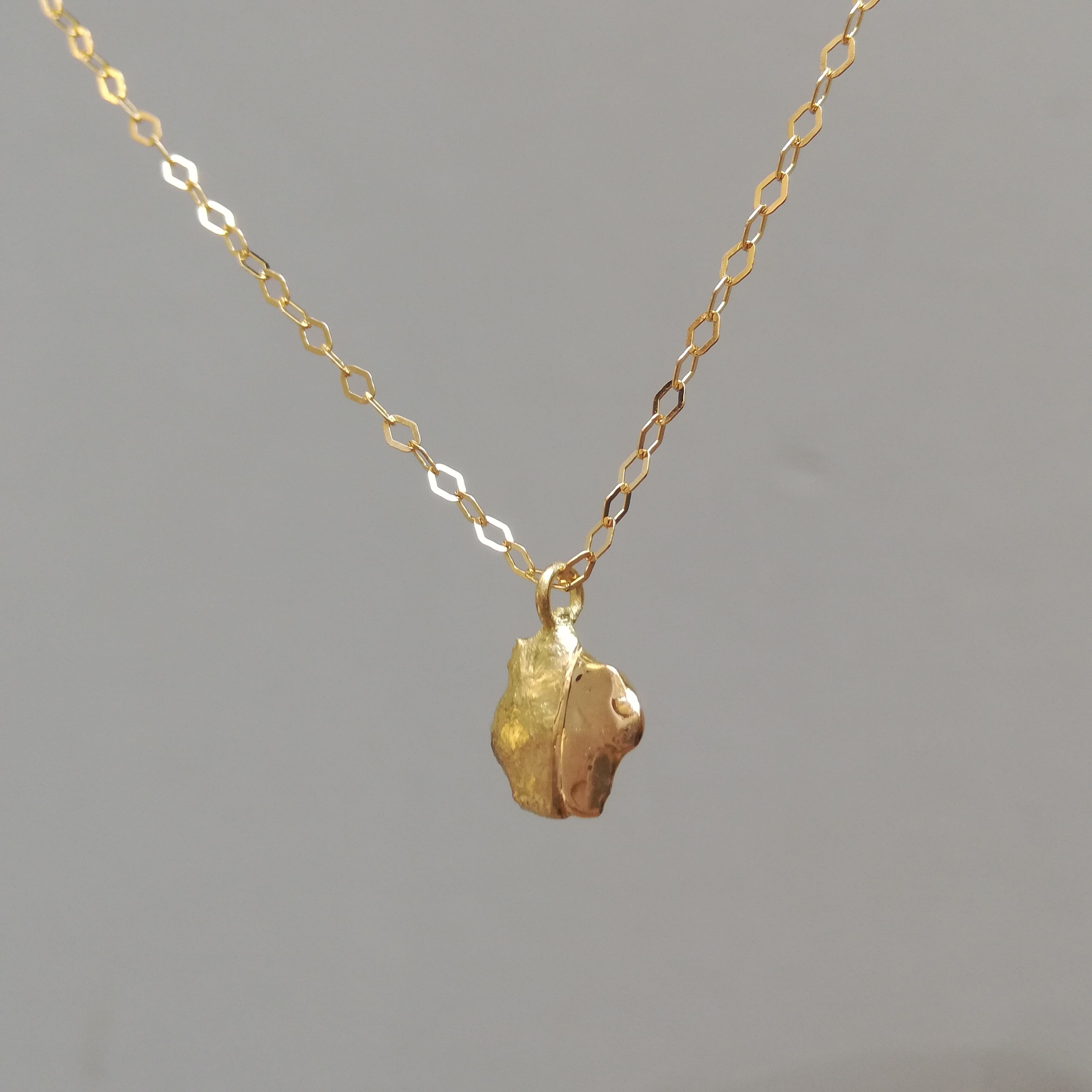 溶けていく金と作家のコラボレーションが生み出す 一瞬の造形をペンダントにしました。