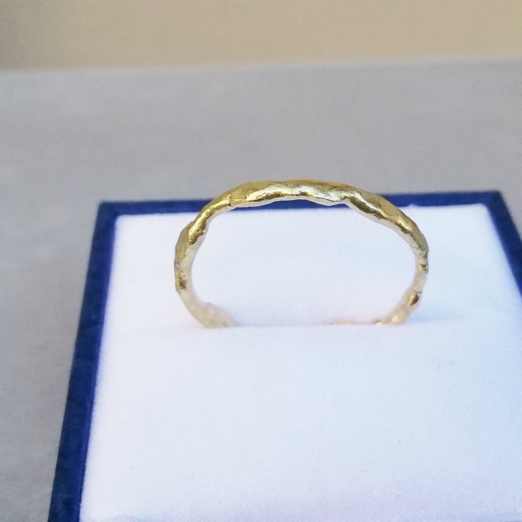 この指輪は18金の小さなかけらを集めて 溶かして作っています。