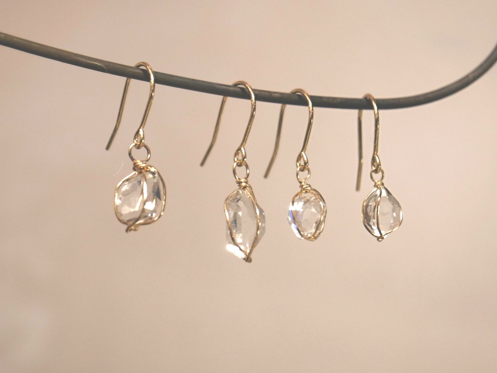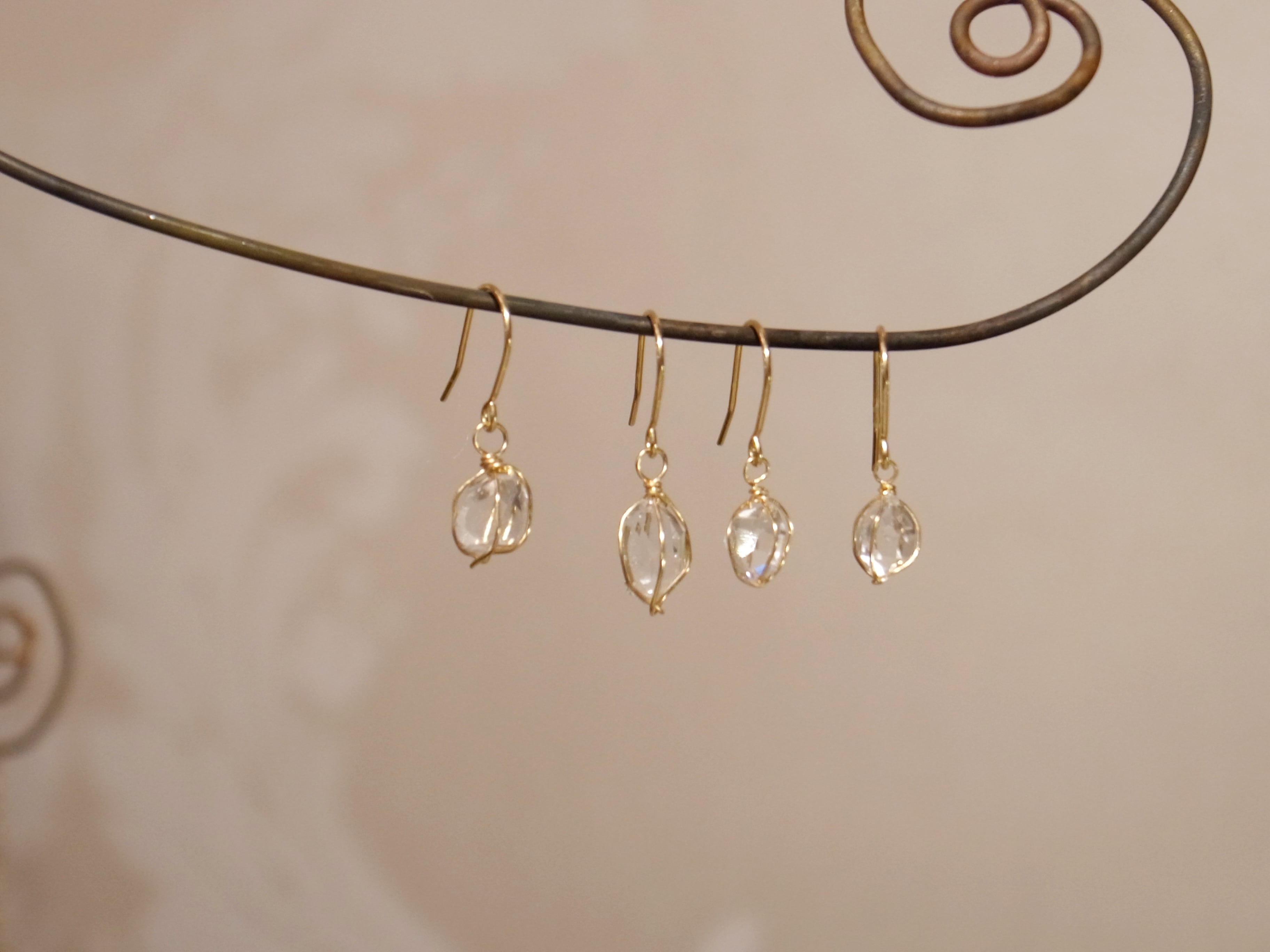 K18金ゴールドハーキマーダイヤモンドフックピアスS Gold earrings お守り水晶