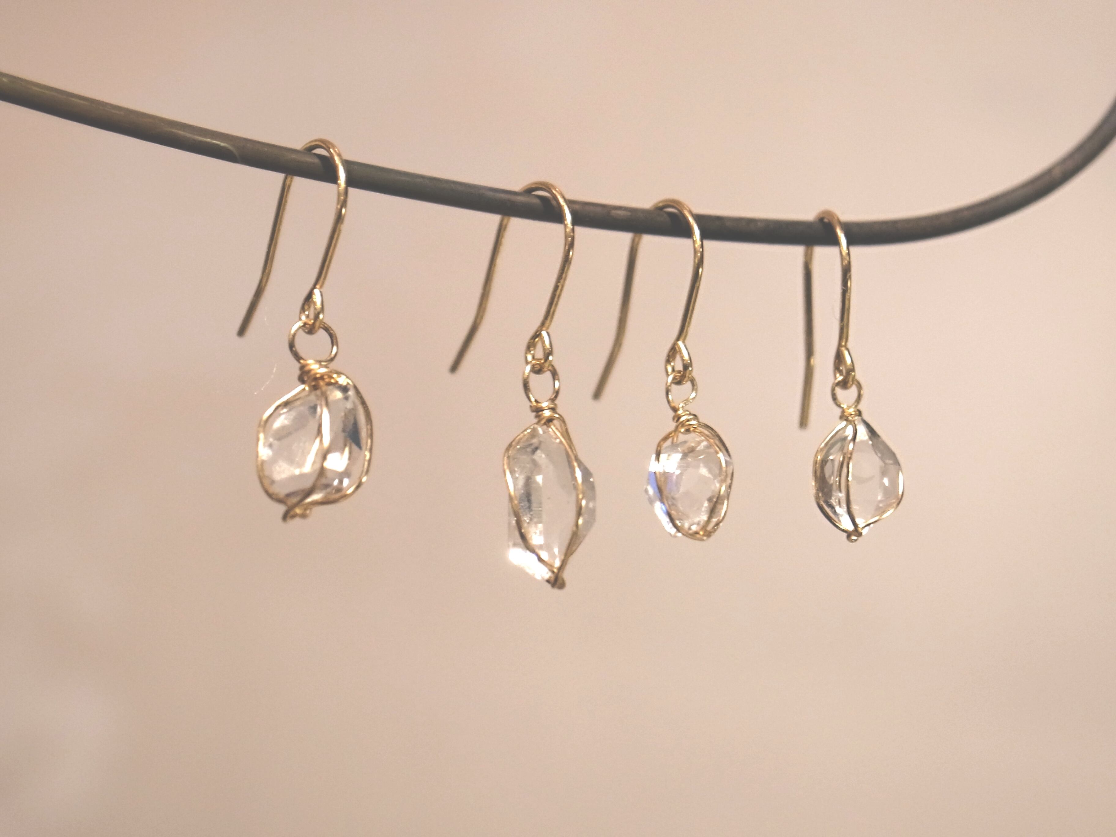 K18金ゴールドハーキマーダイヤモンドフックピアスM-C Gold earrings お守り水晶
